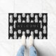 Pineapple fruit pattern door mat with custom welcome text. Add your own message, family name, monogram, surname or funny quote. Cute gift idea for new home / housewarming or engagement / anniversary party. Black and white or custom colour background. Stylish modern typography with tropical fruit print. Personalizable doormat sign template. Create your own entry mat / rug for front door / entryway or hall / venue. Customisable home decor / decorations for your house. Add your own monogram letter initials or surname. Beautiful fruity summer food design.