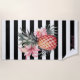 Pineapple Hibiscus , Black White Stripes Beach Towel