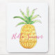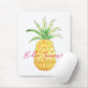 This bright and cheerful mousepad is decorated with a watercolor yellow pineapple and the words Hello Summer in pink.
