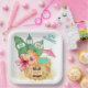 Add an island-inspired, fun and festive vibe to your celebration with these personalised baby shower paper plates! Featuring a watercolor pineapple adorned with tropical palm leaves, hibiscus flowers in coastal pink, coral and turquoise colours. Perfect for Hawaiian, luau, beach, tiki & summer themed baby showers. Art by KL Stock