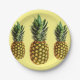 Pineapple print disposable paper party plates. Novelty design dinnerware with tropical fruit design.