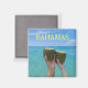 This fridge magnet - Better in the Bahamas - has a photo taken on Paradise Island's Cabbage Beach of two hands each holding a half pineapple filled with rum punch. The pineapples are held up against a blue sea and blue sky. The text is bright yellow.