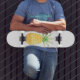 This girly Skateboard is decorated with a hand drawn pineapple in shades of yellow and green.