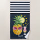 Pineapple Sun Cocktail Navy Blue Striped Beach Towel