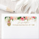 These elegant bridal shower return address labels feature summery tropical watercolor flowers with faux gold glitter confetti and a faux gold glitter pineapple. Coordinating pink and gold text compliment the lovely floral design.