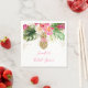 These summery bridal shower napkins have beautiful tropical watercolor flowers with faux gold glitter confetti and a faux gold glitter pineapple. Coordinating pink and gold text compliment the lovely floral design.