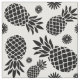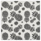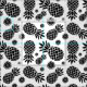 Choose your own colour pineapples with this graphic tropical fruit and flowers repeat patterned fabric on white and shown here in black. Ideal for fruit and tropical crafts and sewing design projects. Original pattern art and design by Sarah Trett.