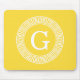 Pineapple Wht Greek Key Rnd Frame Initial Monogram Mouse Pad