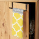 Pineapple and White Moroccan Quatrefoil Trellis Pattern #5, Dark Grey Ribbon Name Monogram Label