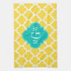 Pineapple Wht Moroccan #5 Teal 3 Initial Monogram Tea Towel