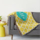 Pineapple Wht Moroccan #5 Teal 3 Initial Monogram Throw Blanket