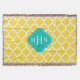 Pineapple Yellow and White Moroccan Quatrefoil Trellis Pattern #5, Teal Quatrefoil 3 Initial Monogram