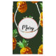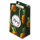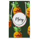 Name gift bag with origami pineapple vector drawing. Summertime trend. Custom background color.