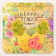 Pineapples with Floral Square Paper Coaster