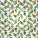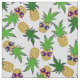 Perfect for summertime, this colourful fabric features graphic artwork of pineapples wearing retro sunglasses with the sun reflected in their purple lenses.