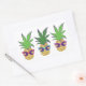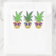 Perfect for summertime, this sticker features colourful graphic artwork of pineapples wearing retro sunglasses with the sun reflected in their purple lenses.