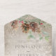 ALSO AVAILABLE WITH A QR CODE TO SCAN. This simple yet elegant design has a modern look, with sprigs of green pine and red berries on a soft white blur overlay on a gold glitter background. Personalised All-In-One invitations are a unique combination of both a beautifully printed custom invitation with an easy to tear off perforated RSVP postcard. And they are so easy to use! You simply fold, then seal the back flap with the three included clear stickers, and mail. And when your guests receive your custom invite, they jus t tear the perforated RSVP Card off and drop it back in the mail to you!