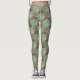 These leggings have a pattern of Copper Ponderosa pinecones on a green background. This pattern comes from handmade tile.