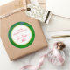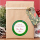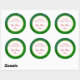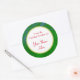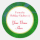 A custom baking, canning or craft sticker with red script letters and a holiday green background with a blue and green pine pattern created from a vintage etching. Customise it to change fonts, move elements and more, even save your personal design for later.
