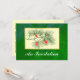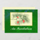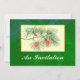 Christmas or Holiday art vintage illustration of a pine bough in green with red pine cones inside a golden frame on a forest green background with a blue and green pine pattern. Use this template to create your own personal invitations for your festive holiday gatherings.