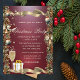 An elegant holiday party invitation featuring a Christmas presents, champagne glass, Santa hat, pinecones, Christmas bells, balls, and poinsettia on red background. These beautiful Christmas invitations are perfect for Christmas dinner party invitations, holiday gift exchange invitations, Christmas fundraisers, holiday ball invitations, and other events held during the month of December. Just use the template fields to add your own event information.