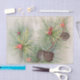Vintage winter holiday tissue paper featuring pines and flower. Personalise it with your holidays message