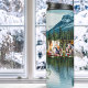 The design radiates a nostalgic and classic flair, capturing the essence of the holiday season. A picturesque blue landscape of green pine trees overlooks a tranquil lake. The upper portion showcases this breathtaking scene, while the lower portion mirrors the pines' reflection on the glistening water, spreading a sense of calm and serenity.