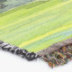 A quality printed throw has its advantages. This is a much finer weave throw than its loopier cousins, and though lighter, it is worth the investment for custom room accessorizing. The back is much prettier than the typical brown, and the fringe on the long sides very vivid, the selvage nicely done. Before photographing, I washed the throw in cold water, delicate, with a thicker woven throw the same size. On tumble dry low, this throw was dry in half the time as the other. This is a very practical quality if you use throws for furniture covers or to wrap up in frequently. The sleekness of the fabric makes it a great layer for accenting or protecting without the feeling of sitting on too much stuff. Perfect for napping or when you feel a light chill coming on. The color printing is beautiful and on this fabric, matched the design and color of my Photoshop image. This is an advantage for blending room fabrics and colors. The fringe on the short sides prints the colors from the design image and therefore varies from the side fringe. I streaked a white fractal line through the plaid pattern to give the illusion of weaving. This printed as crisp as an illusory thread, and put some white in the short side fringe, showing another advantage of print vs loomed- for artistic purposes, line lines, detail, and color integrity can be planned and preserved. My loomed throws have color limitations and more of a needlepoint texture. Print throws reproduce an exact image. The throw felt a little stiff straight out of the package, but this went away in the first delicate wash. Of course I searched the wash water for ink or bleeding and there was none.