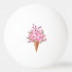 Sweet waffle cone with fresh, pink Japanese cherry blossoms on white background with blue watercolor streaks. Pink Japanese cherry.