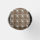 Pictured are white ping pong balls on a brown background in a pattern