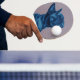 A ping pong bat with a blue Frenchie looking up toward the sky ideal for dog lovers or French Bulldog lovers.