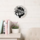 Wall Clock, 25.4 cm Round Black Wooden Frame