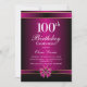 Start organising your celebration with this elegant black and pink 100th birthday party invitation.