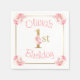 Here's a delightful choice for your little girl's first birthday party celebration. This design features a cute bouquet of soft pink peony flowers hugging the number one in faux gold foil. The customisable words "Olivia's" and "Birthday" encircle 1st. A sweet peony blossom also peaks out at each corner of the napkin together with a faux gold border. What could be sweeter. If you have a design question or would like to see this design on another product, please feel free to contact me at jschmidtdesignworks@gmail.com. Design © Judith Schmidt.