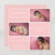 Pink 3 Photo Birth Announcement. Background colour can be changed by clicking customise, edit, background.