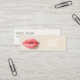 Unique peaches and cream slim business cards. These stylish and fashion-forward business cards feature peachy pink 3D lips against a cream coloured backgound. The complimentary dark sage colour is used for the font at the back. The design is striking and memorable and sure to make a lasting impression. The design is resonates with a modern minimalist in the creative industry. Variations of this design is available in other colour combinations.