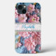 The design presents a delightful array of 3D primroses in shades of pink, creating a visual symphony that captures the essence of nature's beauty. Set against a serene blue background, the flowers exude grace and tranquillity. The glass texture adds depth and authenticity, enhancing the visual appeal and offering a tactile experience. A stunning diamond frame stands ready for personalisation, inviting you to add your name and make this case truly your own.