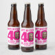 40th birthday hot pink and white photo party paper beer or wine labels. Great to add a personal touch to a surprise fortieth birthday party. Customise with your birthday boys or girls photo in the 0 of 40 and personalise with your choice of name and birthday celebration date. Designed by Sarah Trett for www.mylittleeden.com