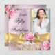 Pink 50 Fabulous Photo Gold Rose Bow Birthday Invitation