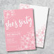 Elegant Sixty Pink 60th Birthday Party Invitation. A fun but elegant 60th birthday party invitation with girly pink and white flowers for the young at heart. A playful flower pattern frames a script typography "she's sixty" mixed with a more classic serif font. Celebrate sixty years of life with this beautiful botanical design. The fun part is you can change out ALL of the colours!! You can not only change the background colours and font, but you can change the lines for the flowers as well.