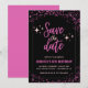 Pink 6th birthday invitations Save the date black Glam chic glitter sparkle