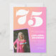 Pink 75th birthday invitations for her Retro Photo gradient