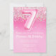 Pink 7th Birthday Invitation Girl Pink Glitter