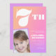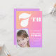 Pink orange 7th birthday invitations for her Retro Photo gradient