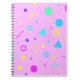 This spiral notebook features a playful neon Memphis geometric pattern with vibrant retro shapes on a pink background. Perfect for school, office, or journaling, it adds a colorful 80s-inspired touch to your everyday notes.