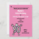 Cartoon pink party birthday invitation. Cute happy image of a number 90 for the 90 year old who's young at heart! Easily personalise this design by editing the template text.