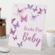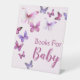 This pretty, pink and purple "a little butterfly" baby shower books for baby table pedestal sign would be the perfect addition to your celebration. Put it on a table so that guests can put the books they brought for the baby if you sent out a "books for baby" gift request.