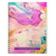 Bring in some color with this personalized notebook. The design features a marbled style paint swirl in pinks, blues, and golds. In addition, it has a place for you to put your name.