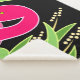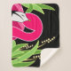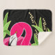 Stylised pink flamingo animal art on a black background with green decorative accents