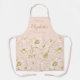 Custom kitchen apron feature abstract floral pattern in pink and gold with personalised name and text. Great personalised kitchen apron for women.